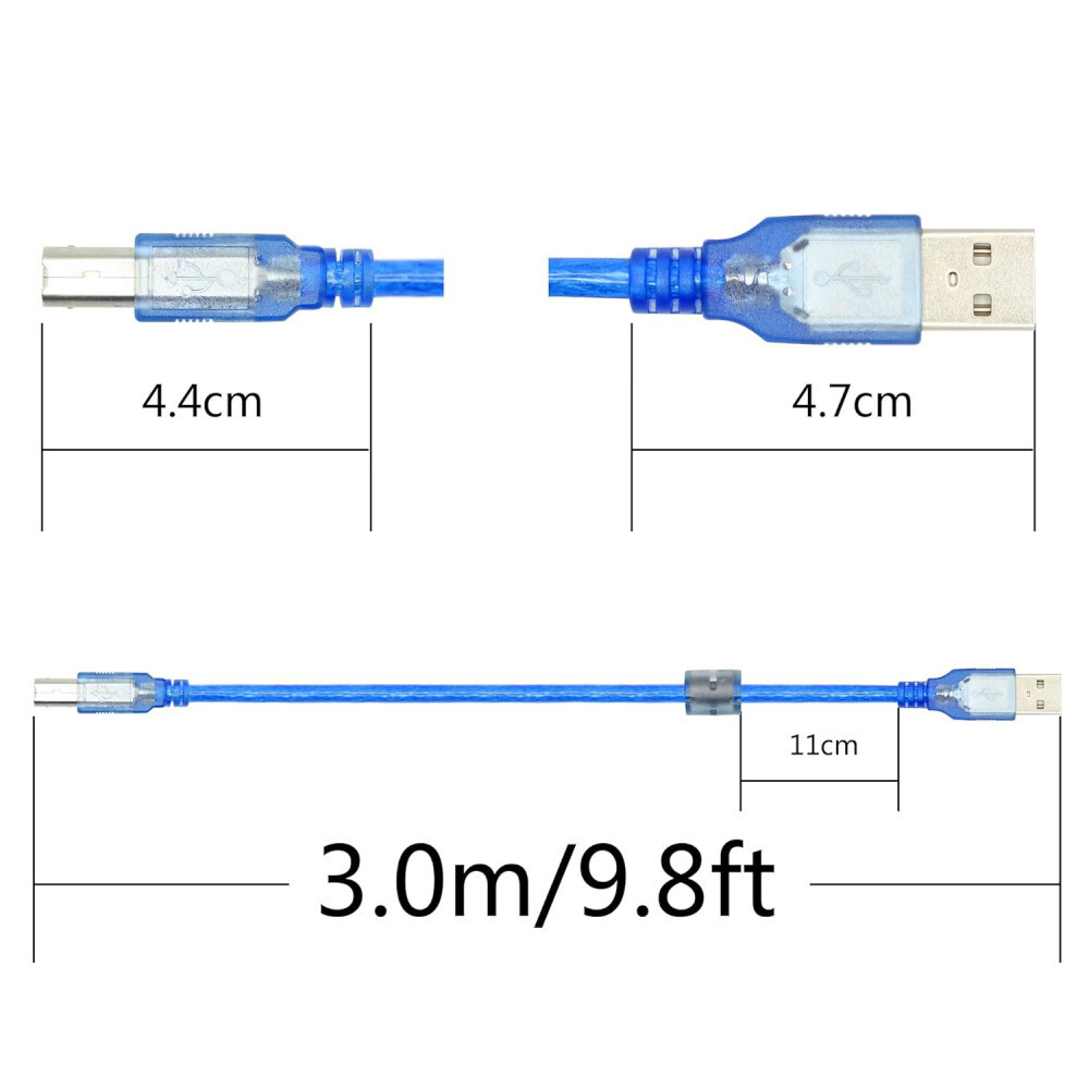 Kabel pro tiskárnu USB-B 3 m – USB 2.0, kabel pro připojení tiskárny a skeneru