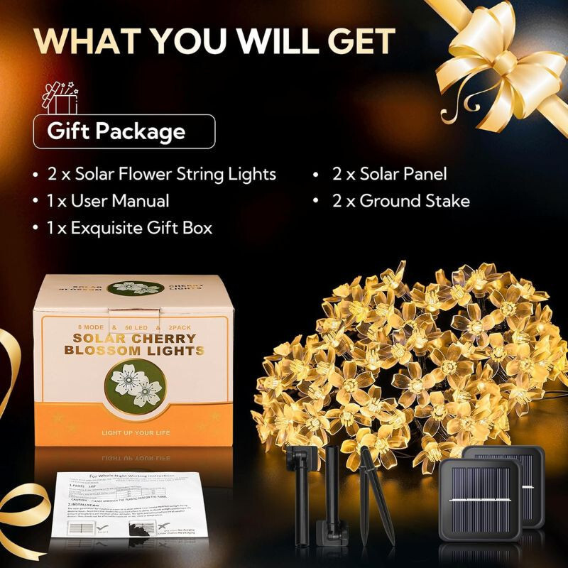Zútulněte si domov nebo zahradu se solárním LED řetězovým světlem s motivem třešňového květu, které ozdobí vaše okolí teplým bílým světlem a realistickými tvary květin.