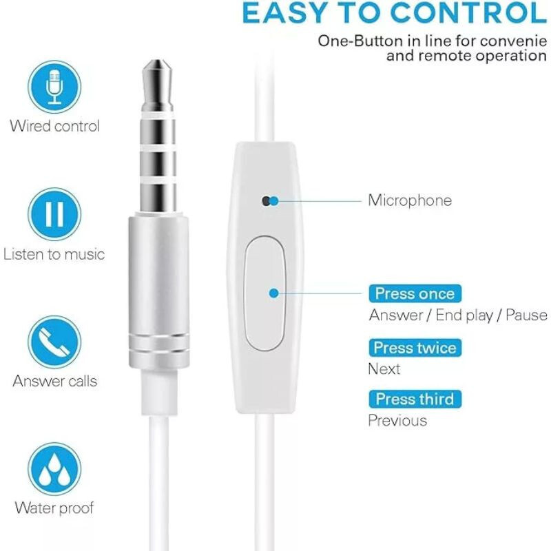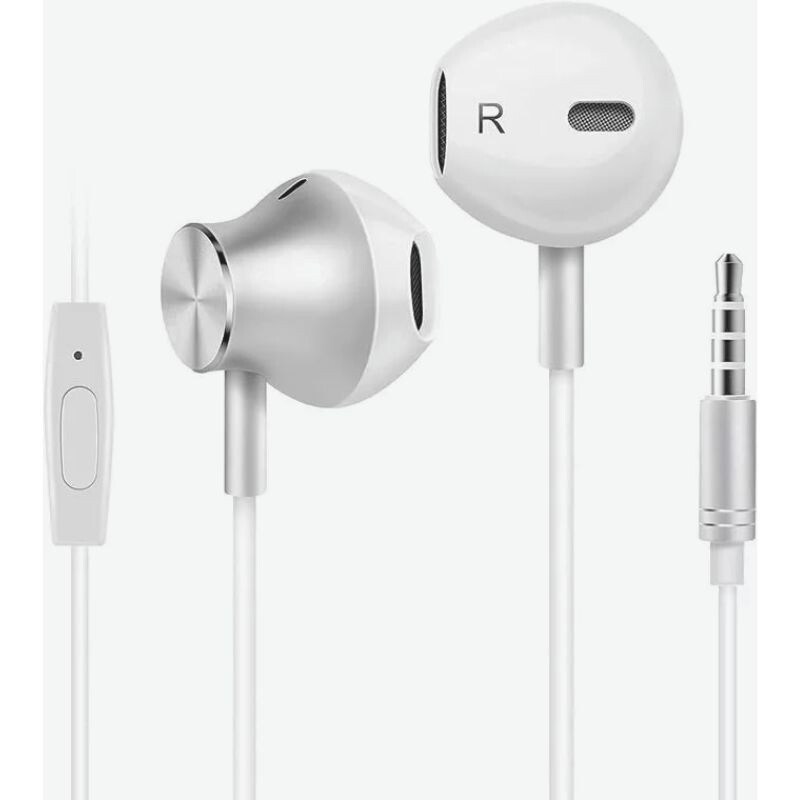 Drátová sluchátka ME-19 s mikrofonem – 3,5mm jack, bílá, pro telefon a počítač