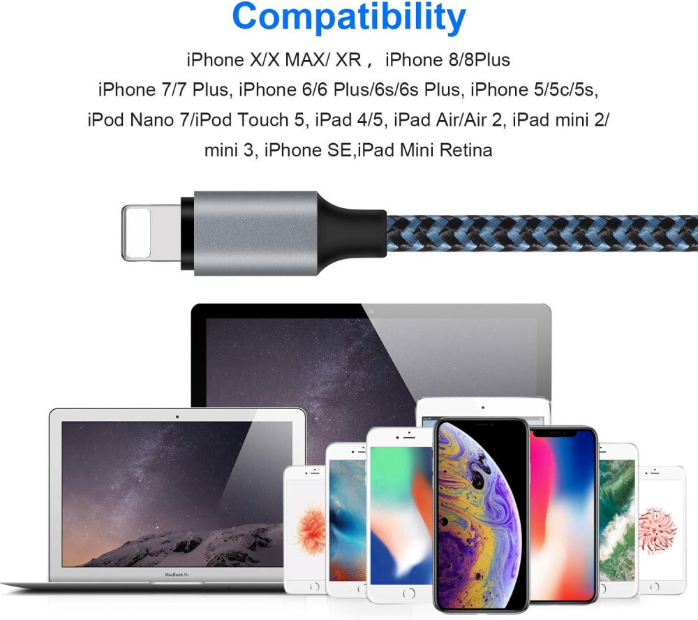 Sada nabíjecích kabelů Lightning pro iPhone – tmavě modro-černá, rychlé nabíjení, certifikace Apple MFi (1 m + 2 m/3 ks + 3 m)