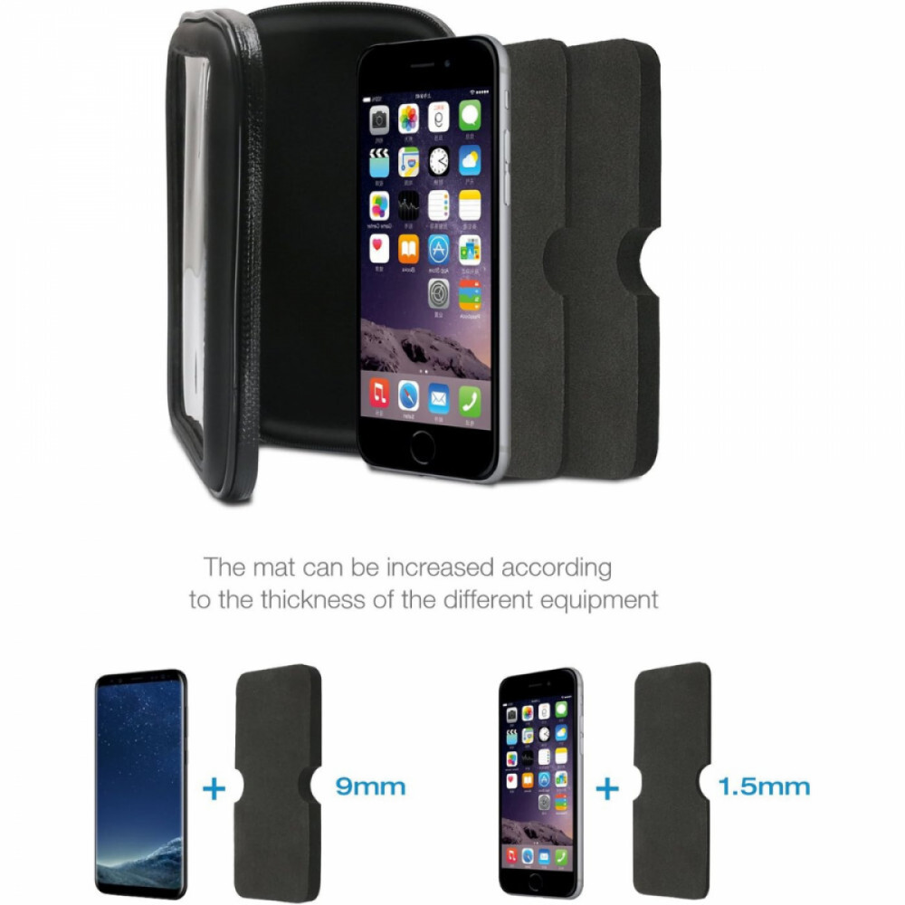 Plně nastavitelné kulové připojení s 360stupňovou rotací a zamykacím systémem pro individuální orientaci na výšku i na šířku. Pouzdro na telefon se snadno odnímá pro bezpečné uchycení; Při montáži brašny na řídítka se ujistěte, že pouzdro slyšitelně zacvakne do držáku.