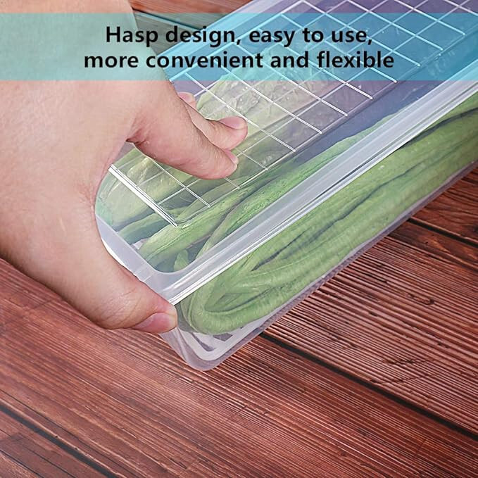 – Průhledný design pro snadnou viditelnost, kompaktní skladování v lednici, mrazáku nebo kuchyňské skříňce.