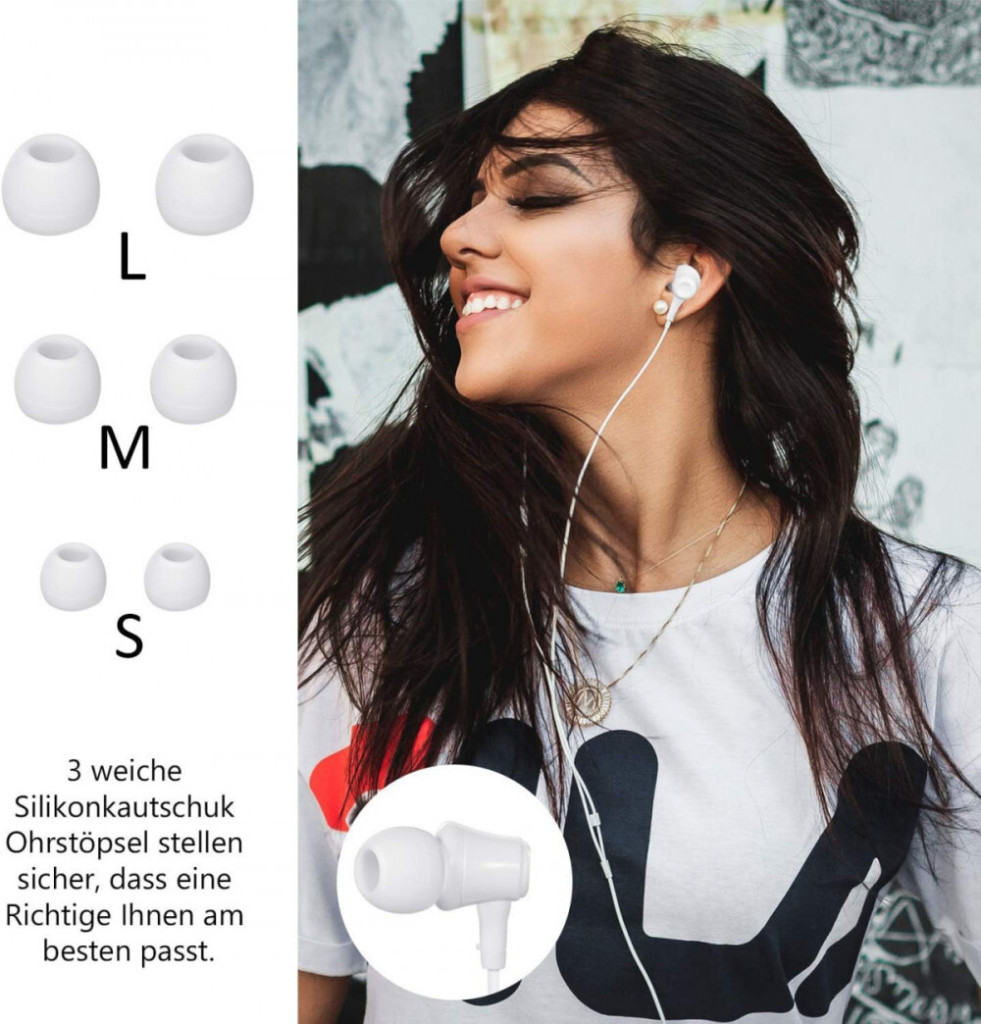 se třemi velikostmi silikonových vložek a vestavěným ovládáním hlasitosti.