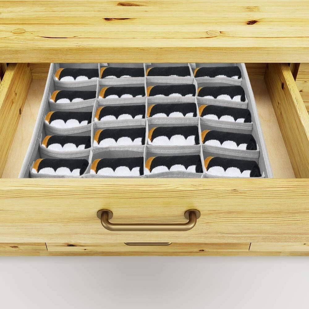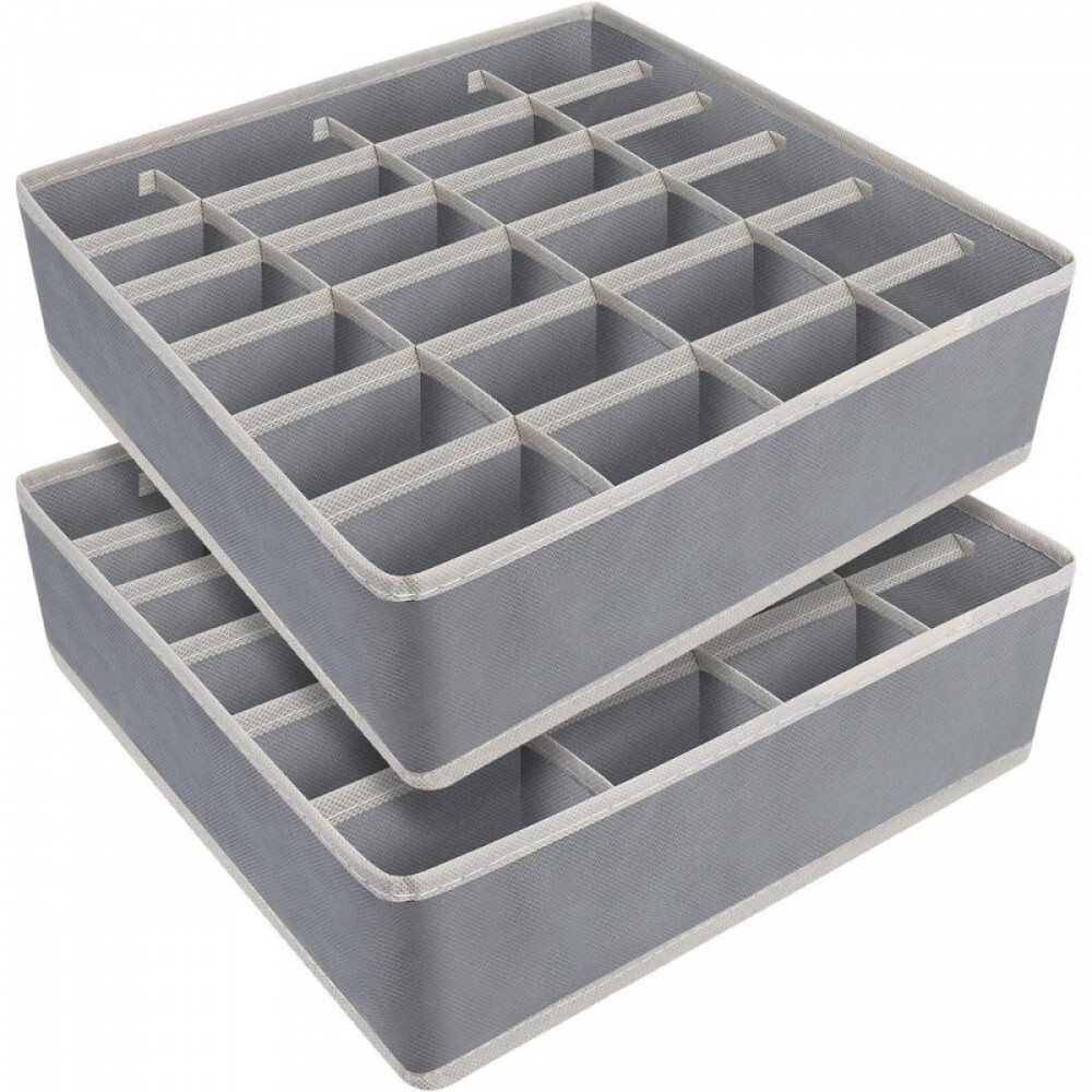 Oba úložné boxy mají 24 samostatných přihrádek, ideálních pro uspořádání ponožek, kravat, spodního prádla, doplňků nebo jiných drobných předmětů podle barvy a stylu