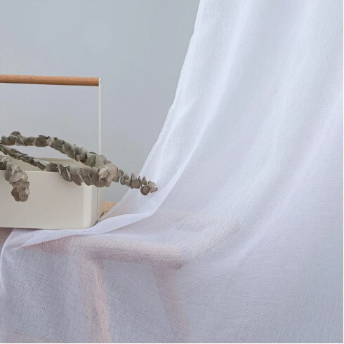 průsvitná látka podobná lnu – přirozený vzhled, měkká propustnost světla