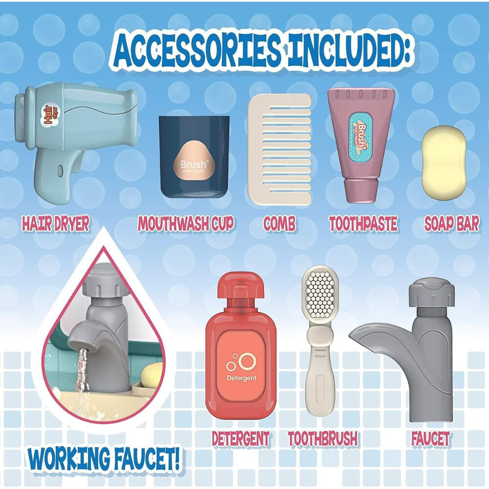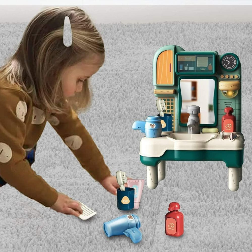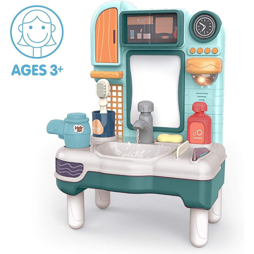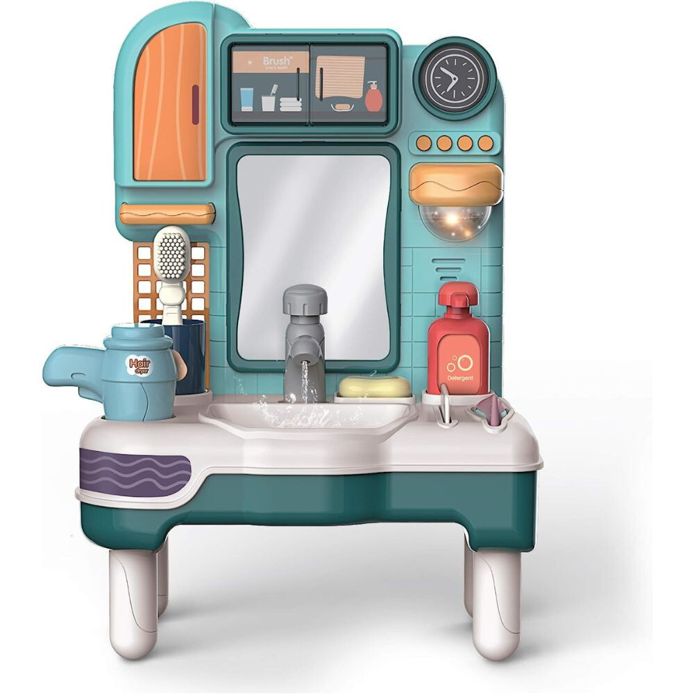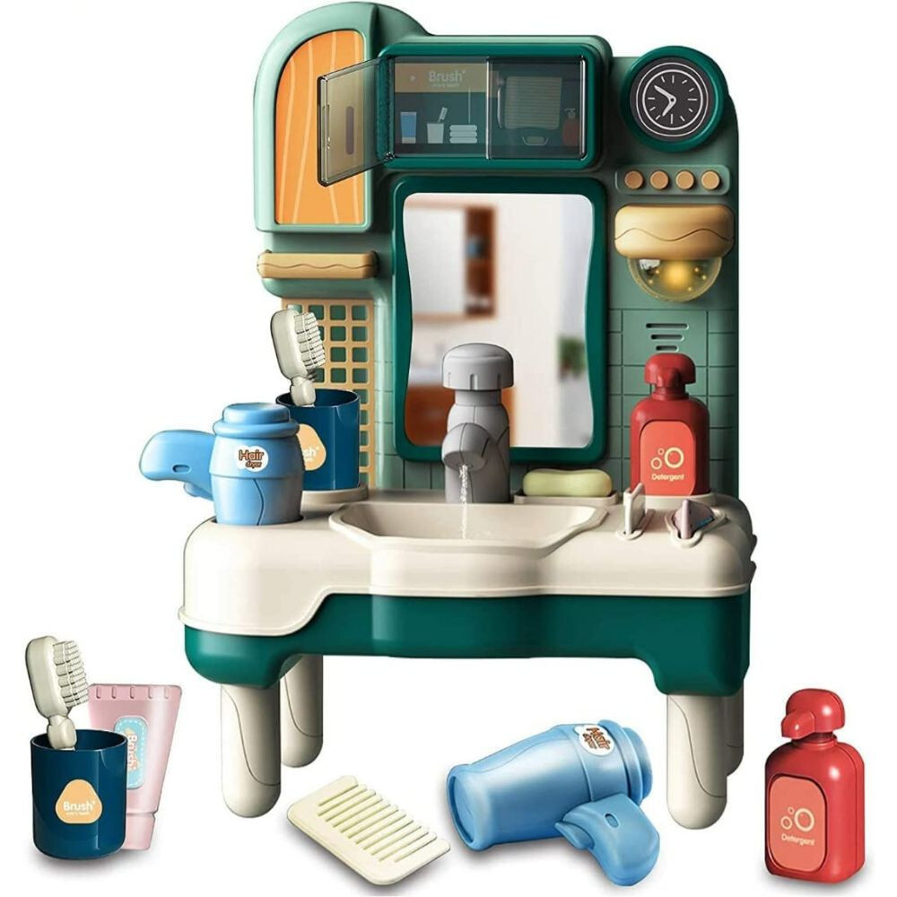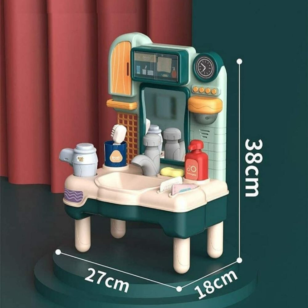 Koupelnové zrcadlo s umyvadlem, baterií a příslušenstvím (přehrávač osvětlení a zvuku)