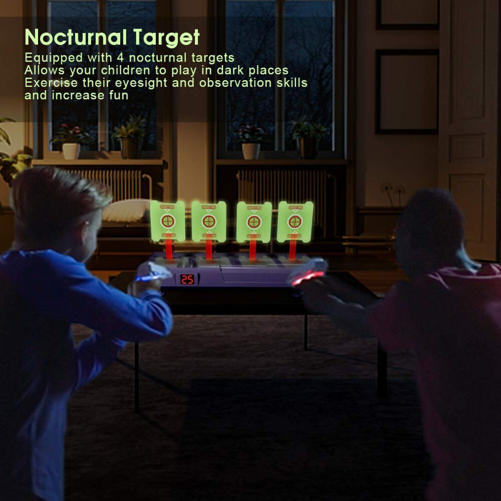Když zasáhnete cíl, vydává zvukové, světelné a stínové efekty, které simulují střelbu, aposkytují tak realistický herní zážitek. Hra je vhodná pro rodinné setkání, večírky, týmové hry nebo i venkovní aktivity.