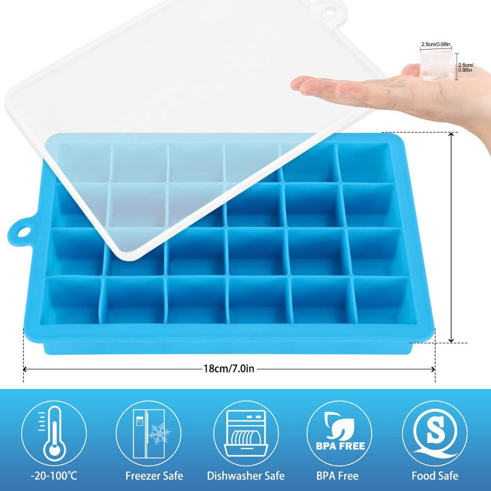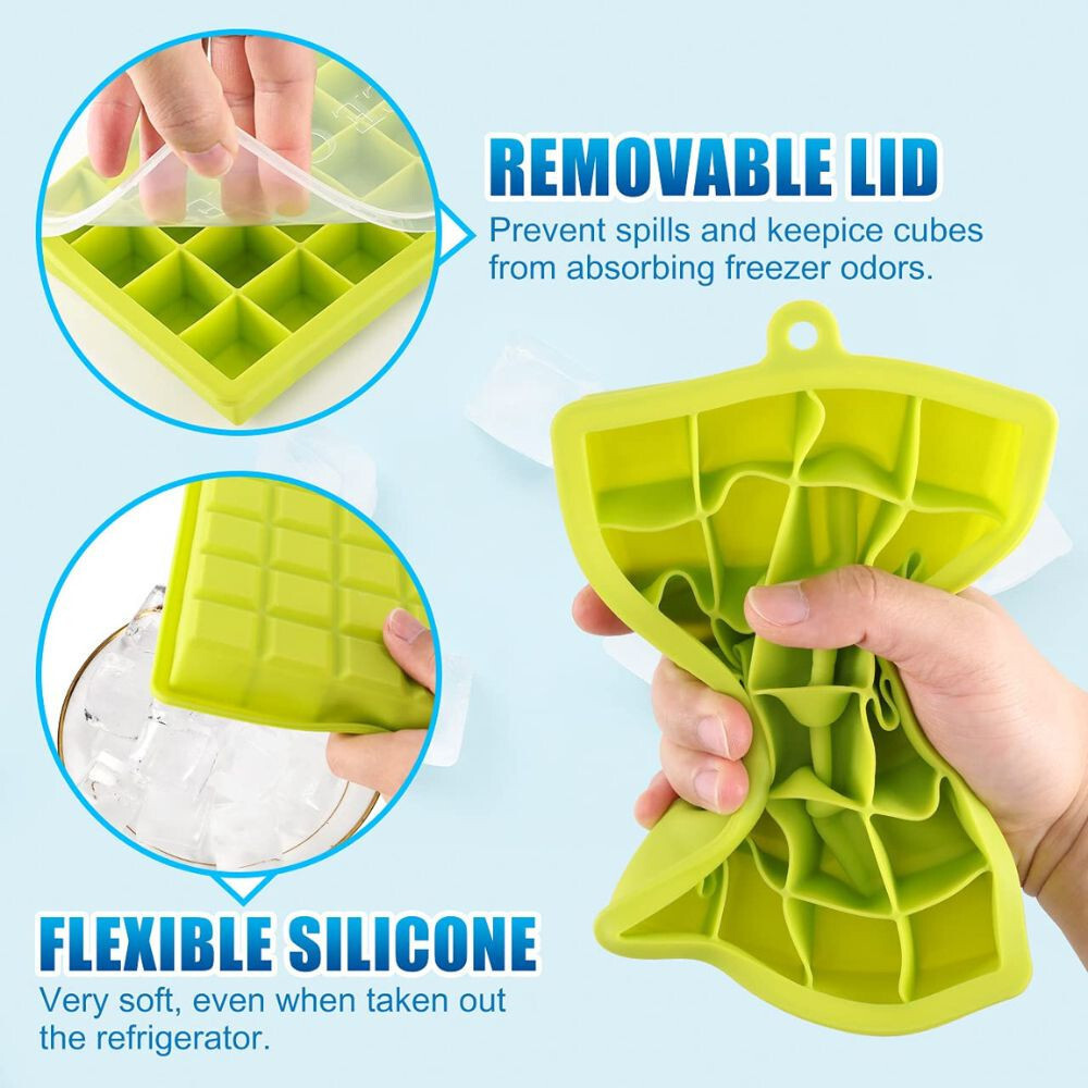 Materiál ze silikonu a TPE bez obsahu BPA zajišťuje flexibilní, bezpečné a odolné použití a zároveň umožňuje snadné vyjímání kostek ledu bez prasknutí. Víčka zabraňují rozlití a poskytují úsporu místa při skladování v mrazáku.