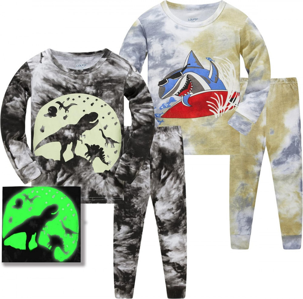 LOLPIP Dlouhé bavlněné pyžamo pro chlapce pro 8 let, 2díly (žralok a dinosaurus)