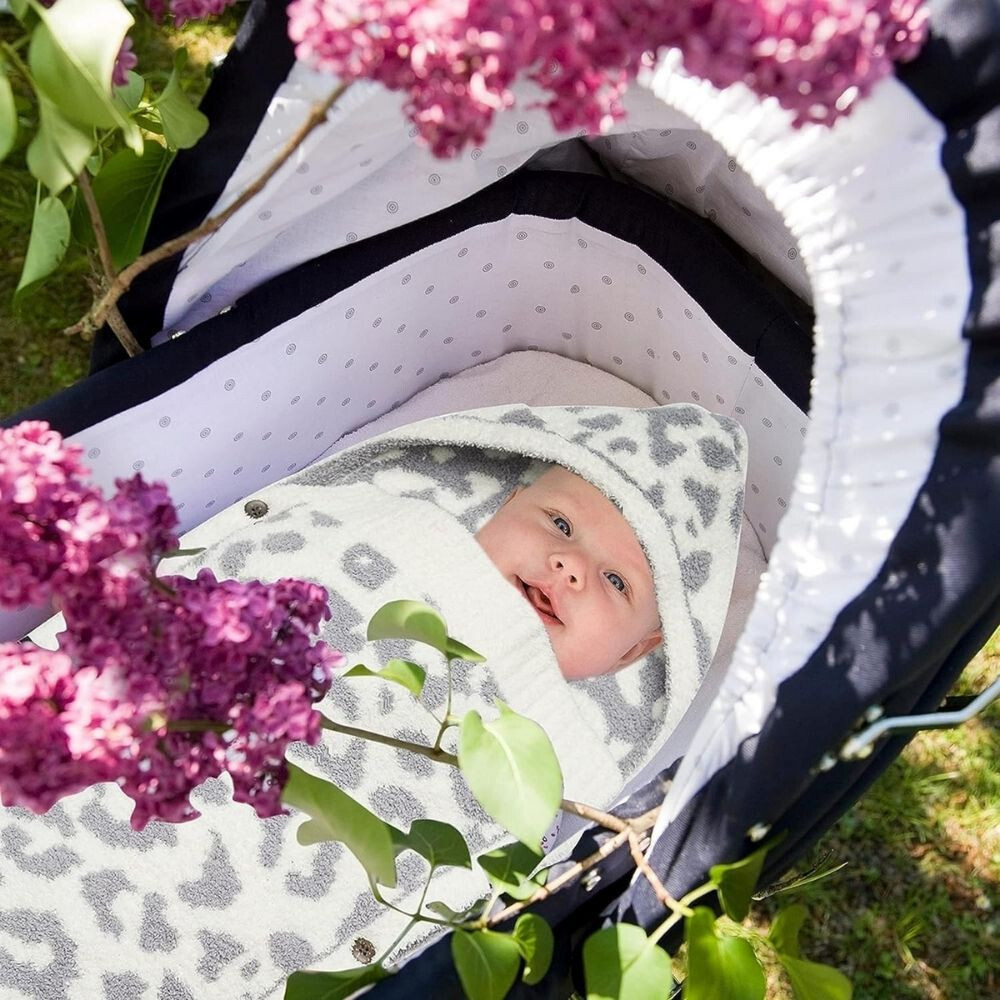 Spací pytel z měkkého materiálu, který je šetrný k pokožce novorozenců. Pletená příze a vložka do pera jsou vyrobeny ze 100% odolného, pružného a lehkého polyesteru a nevypadávají.