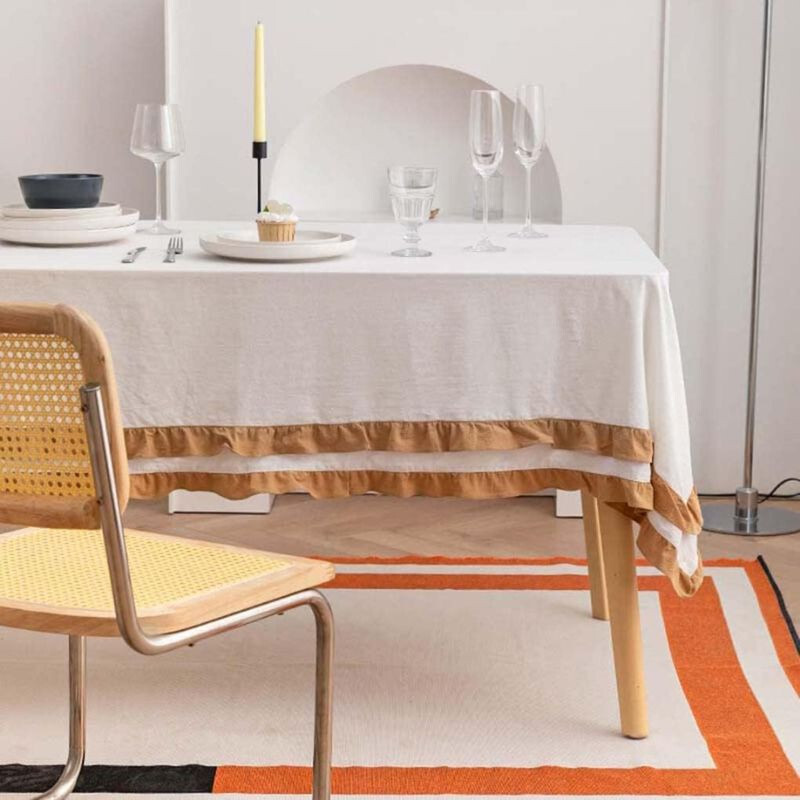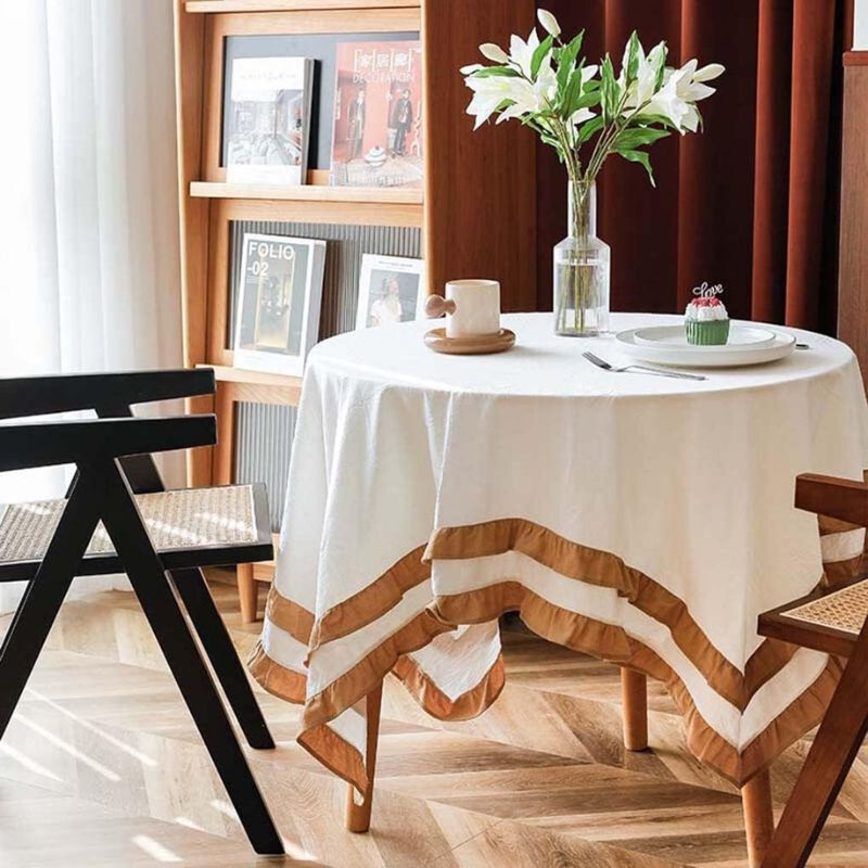 Elegantní volánkový design, odolný bavlněný materiál. Ideální pro domácnost, kavárny nebo restaurace. Stylová a praktická ochrana pro stůl!