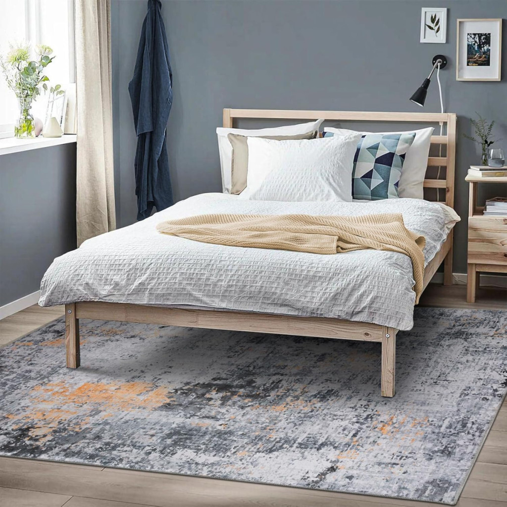 Decomall omyvatelný abstraktní koberec, protiskluzový, nemačkavý, estetický, barevný koberec s nízkou výškou vlasu do obývacího pokoje, ložnice, jídelny, kanceláře, barva šedá/žlutá.