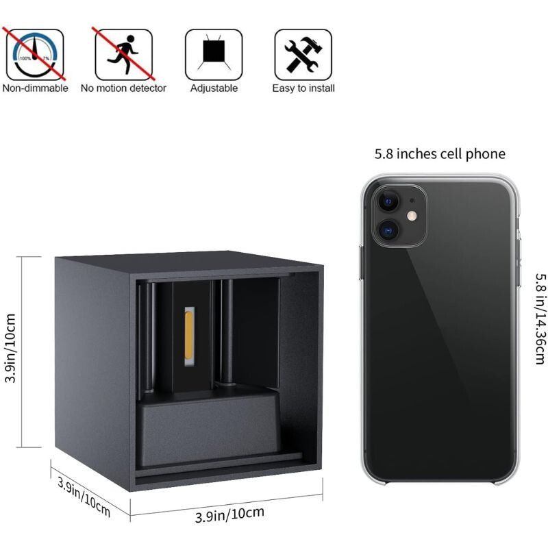 Venkovní nástěnné svítidlo K-Bright LED 12W, IP65, vodotěsné, antracitové, teplé bílé světlo - 1 ks