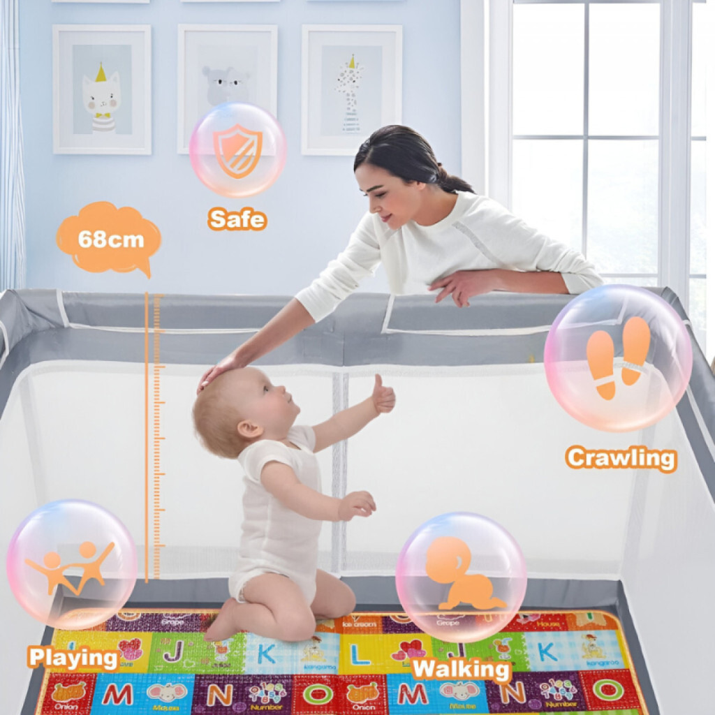 Přenosná dětská ohrádka Tenckat – s matrací pro domácí mazlíčky, 130×130×68 cm