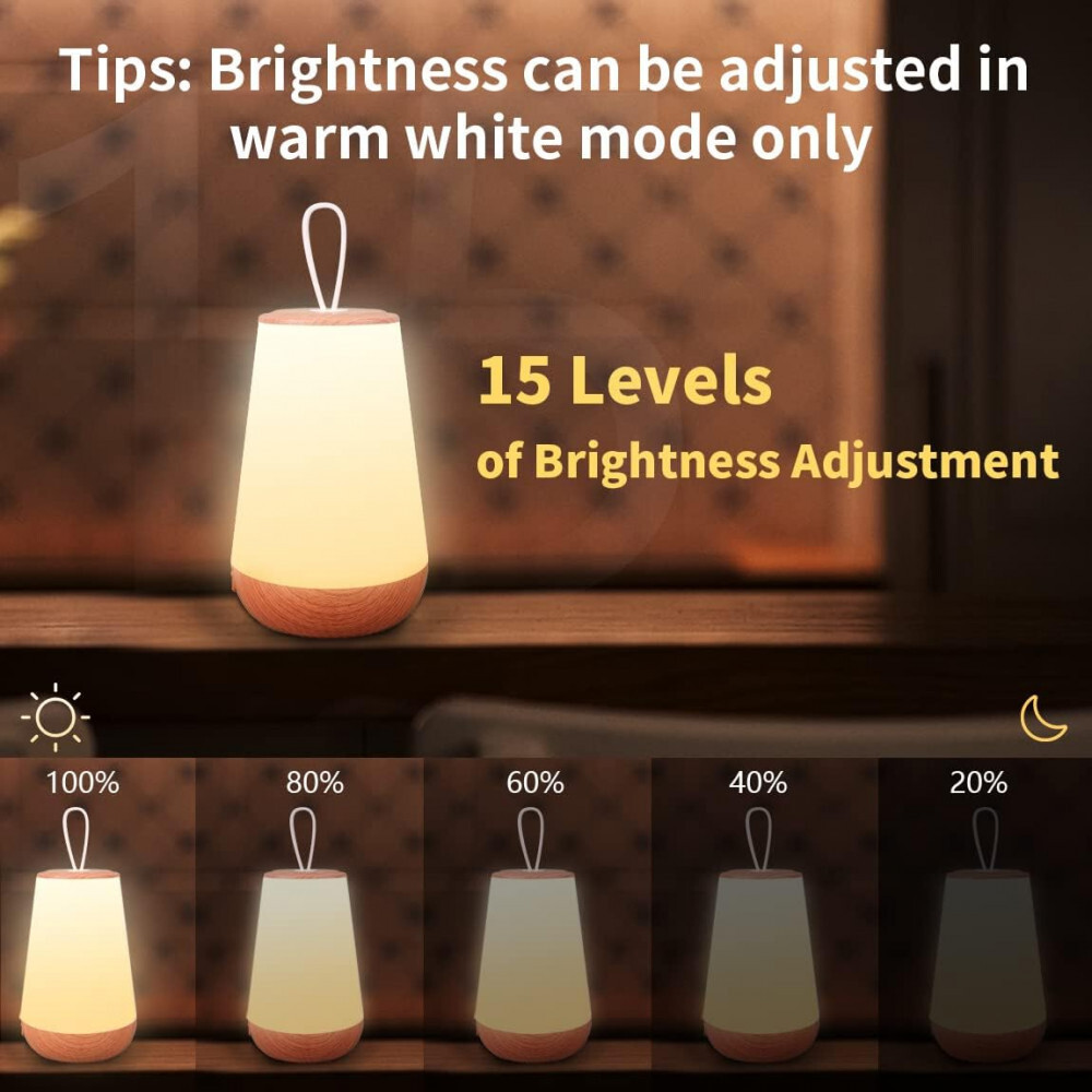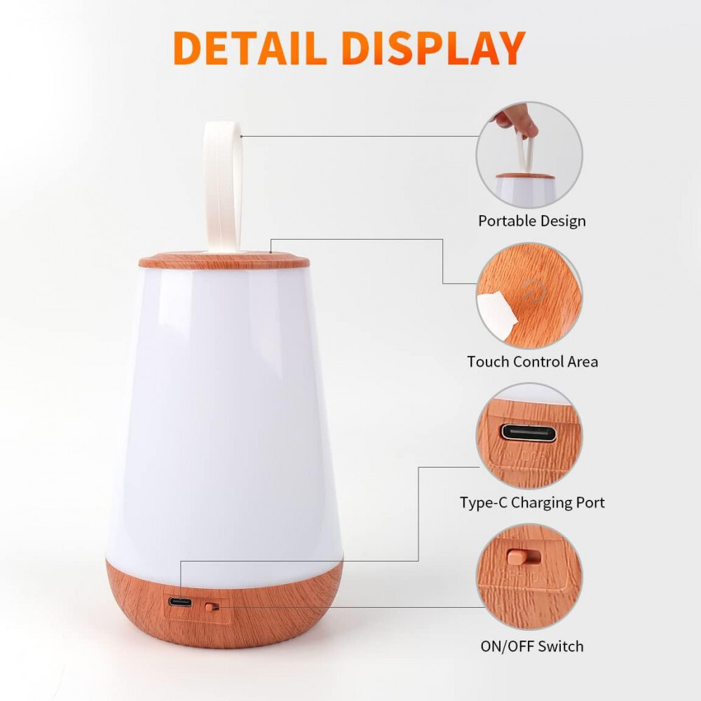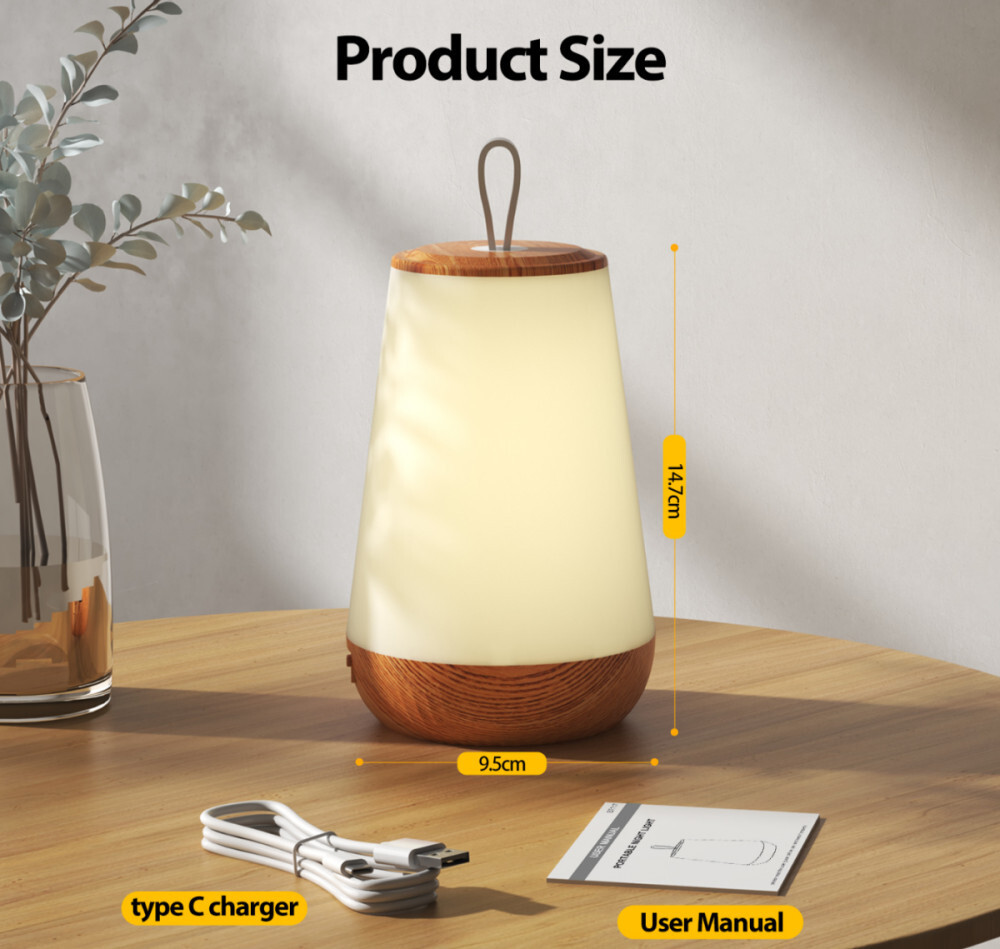 LED noční světlo – vzor dřeva, teplé světlo, stolní lampa do ložnice. Uživatelská příručka.