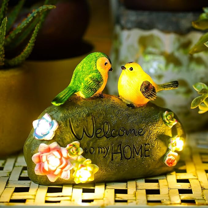 Venkovní solární dekorační světlo JeeYee s motivem ptáka a cedulí „Vítejte v mém domě“ – zahradní LED