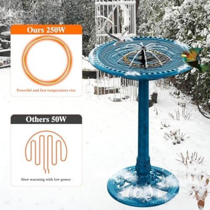 Udělejte s tím svou zahradu bohatší a praktičtější 250W zimní ohřívač ptáků s fontánoua poskytnout krásné, udržitelné a pohodlné místo pro ptáky a jiná zvířata, aby si mohli užívat zimní měsíce!